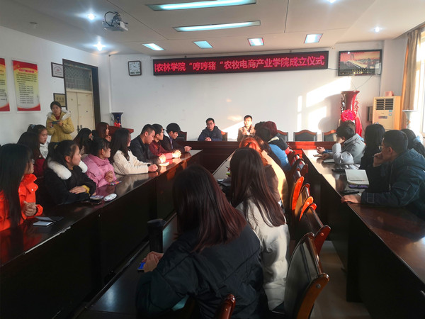 12月20日由牧医工程学院、工商管理学院和哼哼猪电子商务有限公司共同主办的“哼哼猪”农牧电商产业学院成立仪式在实验楼2C313举行。牧医工程学院党总支副书记张广强、哼哼猪电子商务人力资源总监张佳以及全体产业学院学员参会。