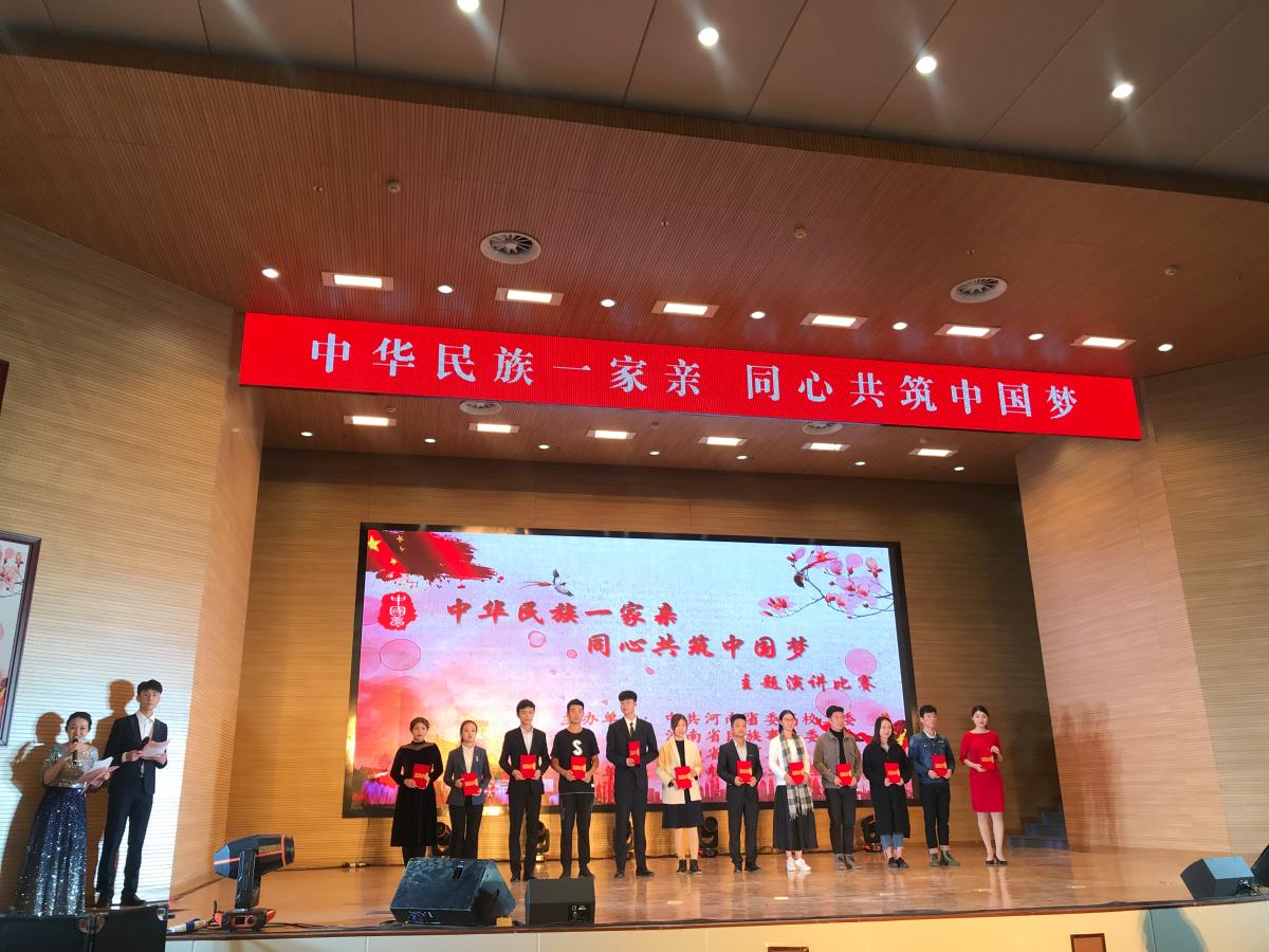 为深入学习习近平总书记关于民族工作的重要论述,积极贯彻党和国家的民族政策,促进高校师生“铸牢中华民族共同体意识”,深入推进民族团结创建活动人文化、大众化、实体化,不断推动我省高校民族团结教育工作广泛持续开展。今年5月,省委高校工委、省教育厅、省民委联合印发了《关于举办“中华民族一家亲 同心共筑中国梦”主题演讲比赛的通知》。接到通知后,学校党委高度重视,党委统战部牵头,校团委具体负责,认真组织,在校内进行初赛对参赛选手进行认真选拔,在学生中掀起了深入学习习近平总书记关于民族工作的重要论述的热潮。据悉,本次大赛全省共有39 所高校进入决赛,最终产生了一等奖8个、二等奖12个、三等奖19个。