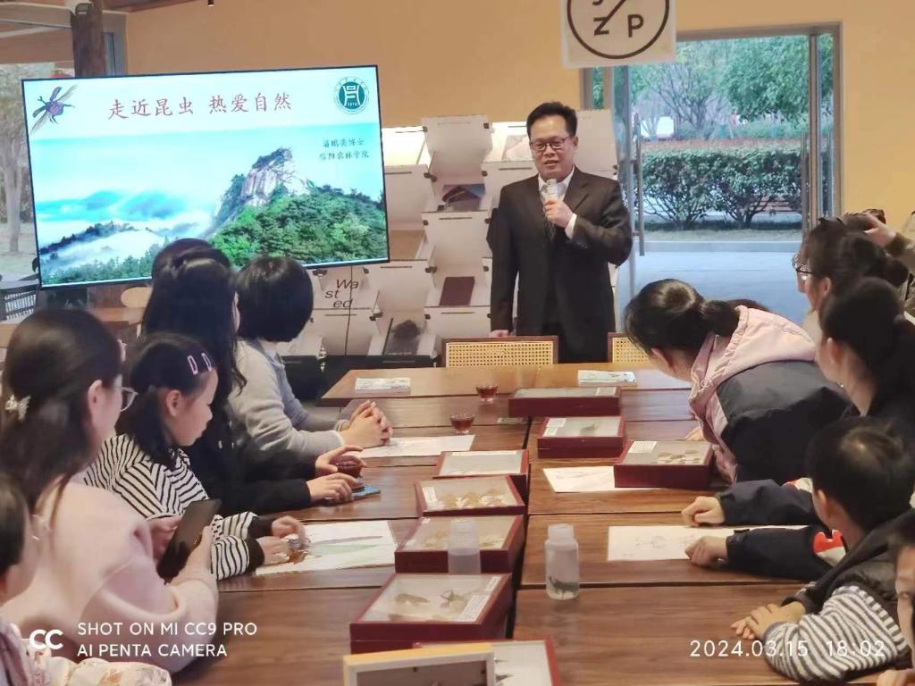 3月15日,受羊山新区人大办邀请,信阳市第六届政协委员、平桥区第六届人大代表、beat365在线平台官网知联会副会长潘鹏亮博士,在百花园“两个更好”书屋开展了一场妙趣横生的昆虫科普知识讲座。部分市政协委员、区人大代表携子女参加了本次活动。