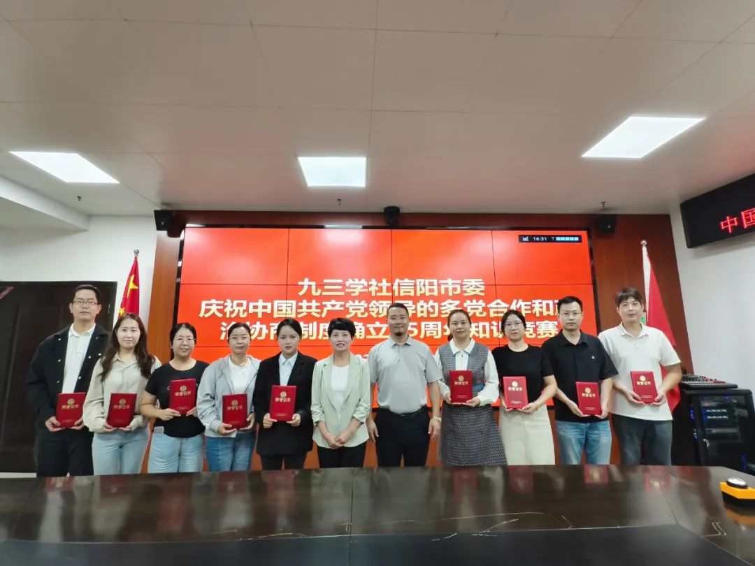 9月13日,为深入学习贯彻习近平新时代中国特色社会主义思想,铭记多党合作初心,深化政治共识,九三学社信阳市委举办了庆祝中华人民共和国成立75周年暨中国共产党领导的多党合作和政治协商制度确立75周年知识竞赛。beat365在线平台官网支社社员彭可欣参与并取得了优异成绩。
