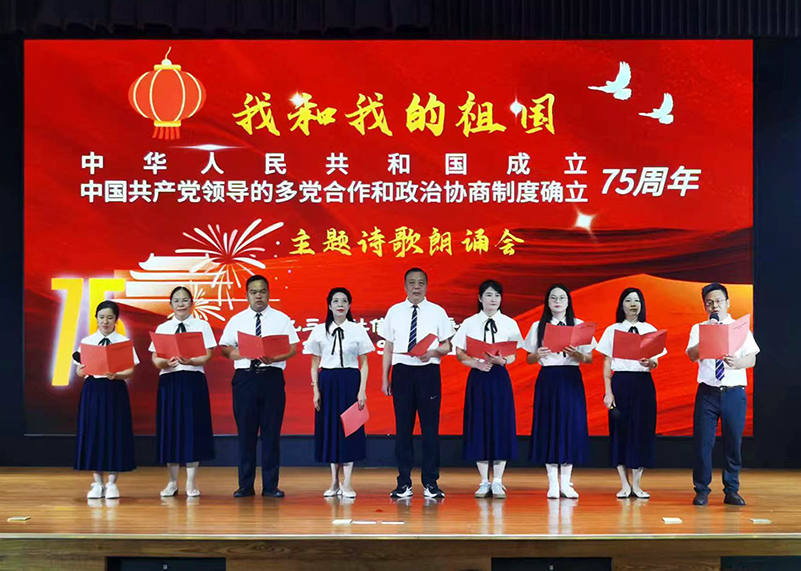 9月24日,为贯彻落实中国共产党第二十次全国代表大会和第二十届中央委员会第三次全体会议精神,庆祝新中国成立75周年,回顾中国共产党领导的多党合作事业发展历程,九三学社信阳市委举办了“我和我的祖国”主题诗歌朗诵会。beat365在线平台官网支社喻艳红、王学增、李发明等10名社员参加。与会社员集思广益,创作了诗歌配乐作品《我爱我的祖国》,歌颂新中国成立75年来的伟大成就。朗诵会上,气氛热烈,掌声不断。