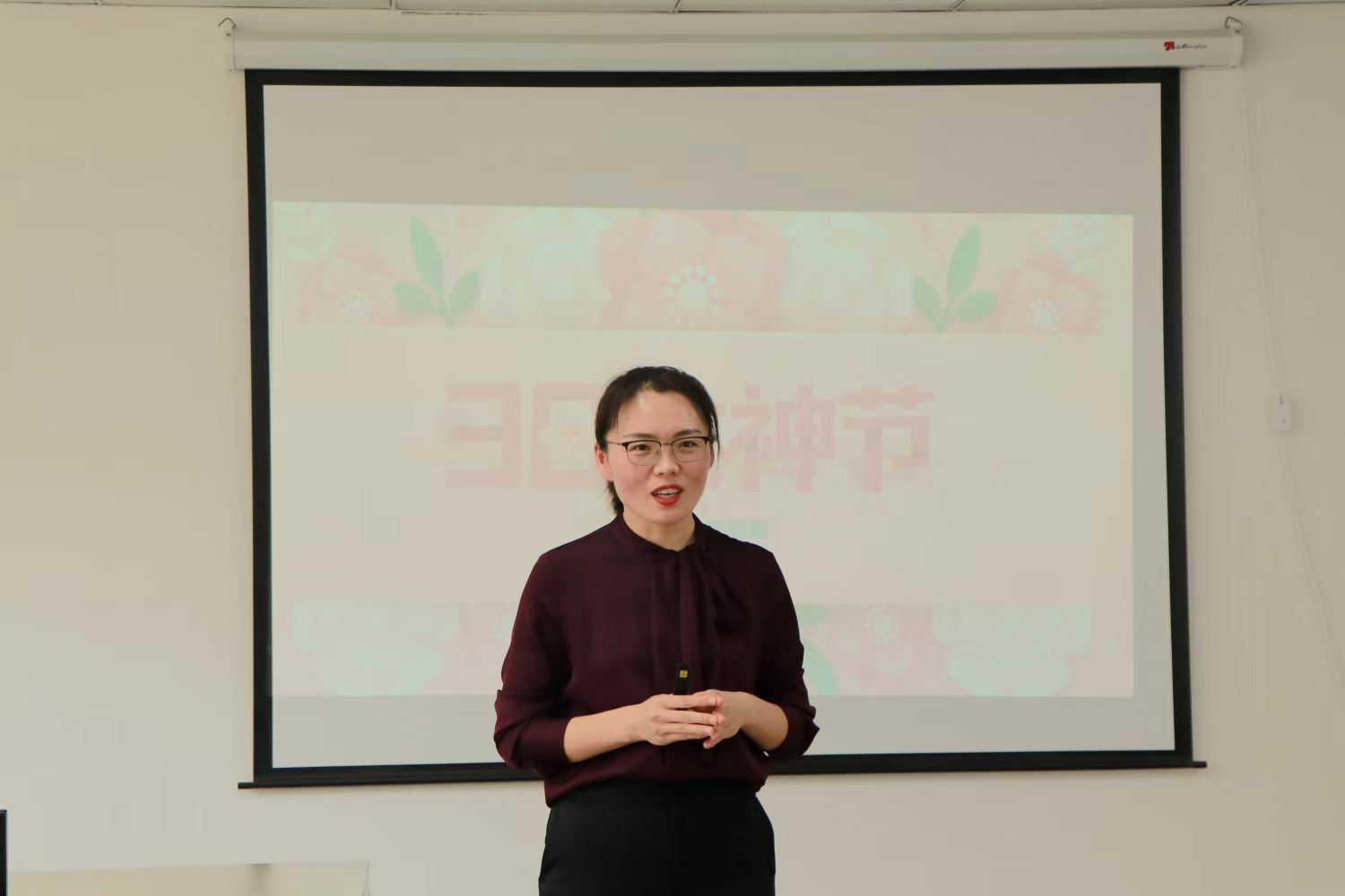 旅游管理学院工会主席、党总支副书记杜丽致开幕词,她充分肯定了学院女性教职工们多年来对学院工作做出的贡献,赞美了女教职工们的巾帼风采,同时表达了最诚挚的节日祝福,祝愿所有的女同胞们容颜不老、美丽常在,永远被岁月温柔以待。