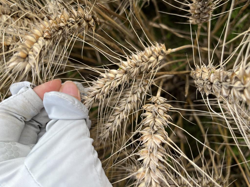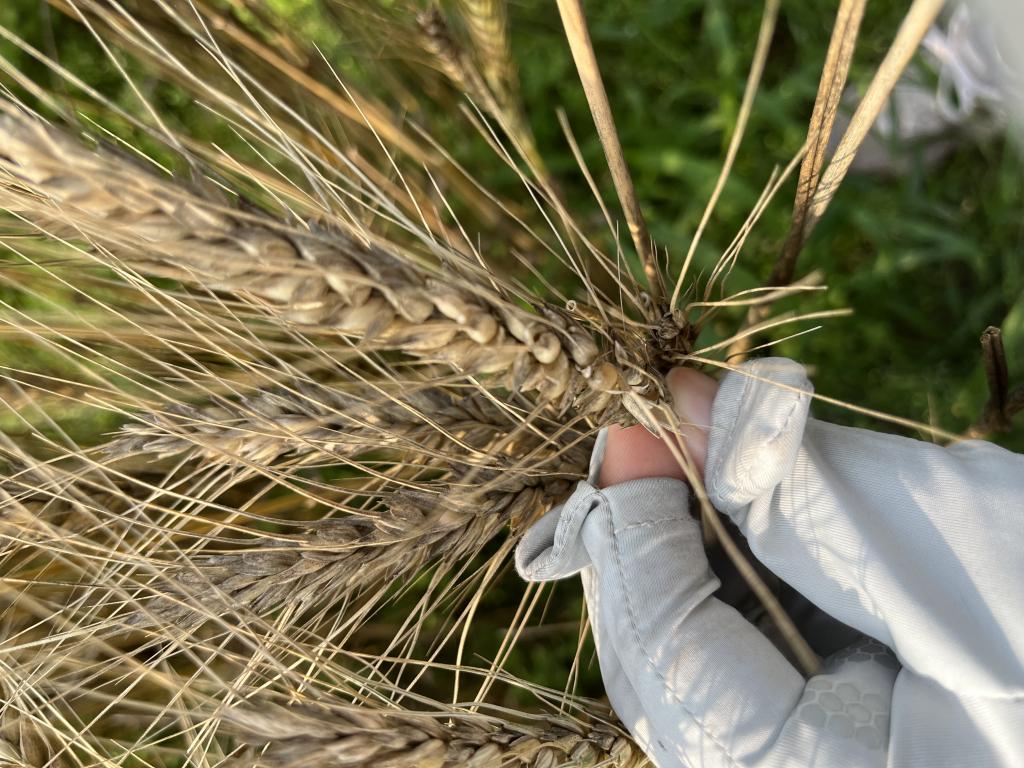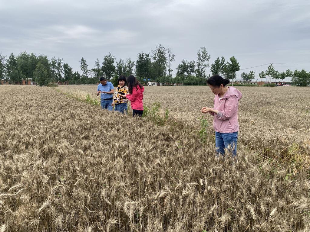 在信阳市息县项店乡宏升粮食制品有限公司种植基地调研小麦成熟状况