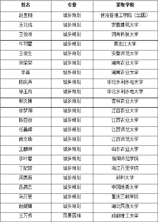 规划与设计学院2021届毕业生考研录取名单