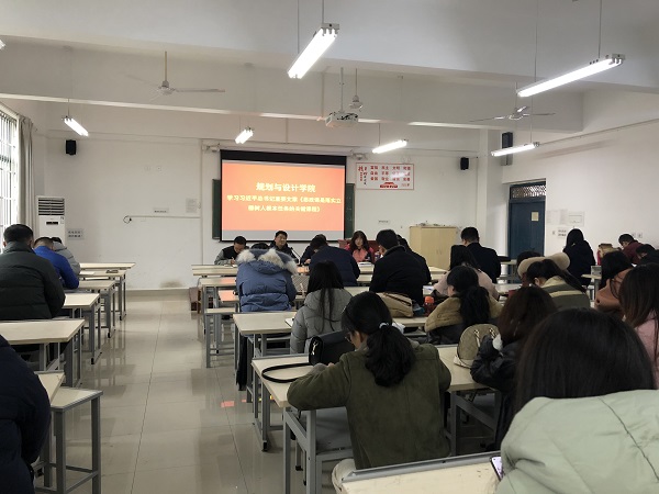 12月8日下午,规划与设计学院全体教职工于二教514室集中学习了习近平总书记2019年3月18日在学校思想政治理论课教师座谈会上的重要讲话《思政课是落实立德树人根本任务的关键课程》。