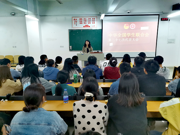 为学习习近平总书记致全国学联二十七大的贺信精神、中华全国学生联合会第二十七次代表大会会议精神,进一步推动我院学生会改革落地落实,10月8日,规划与设计学院在二教101开展学习中华全国学联二十七大精神培训会,学院团总支书记魏薇主持培训会,大二各班班长、团支书和团总支学生会参加培训学习。