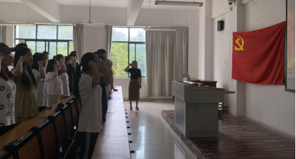 入党誓词是共产党人的行动指南,不断重温,终身践行,工作学习前进路上,不断指引方向。在党支部书记刘俊楠的带领下,支部全体党员一起高举右手,面对鲜红的党旗,庄严宣誓。一字一句,神圣而豪迈,铮铮誓言,体现了党员们对中国共产党的无限忠诚,坚定了入党使命,奋斗初心。