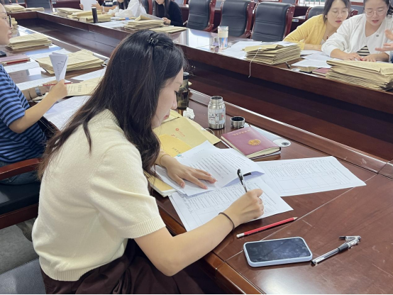 首先,葛晖强调了试卷和非试卷的批阅和归档要求。然后检查人员对2023-2024学年第二学期试卷及非试卷批阅和归档进行检查评分,对每一份试卷和非试卷考核材料进行了严格的把关,确保考核内容的科学性、合理性和公平性。此次检查内容涵盖了试卷的批阅质量、归档质量、评分标准、试卷批改的准确性以及非试卷考核材料的完整性和合理性。各位老师对存在问题的试卷逐份核实、登记、评分,确保试卷各项材料符合标准。