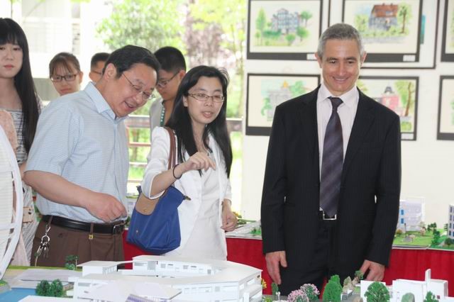 Philip Payne一进展厅,就被丰富的艺术作品所吸引,饶有兴致地观看了学生的作品展示。在鸡公山写生作品展区,他详细了解了学生们对写生作品及创作过程的介绍,并就艺术作品的内涵和表现方式进行了深入交流,并由衷地赞叹:“你们学生的专业基本功很扎实,画的房子非常漂亮,我真想住过去”。随后,Philip Payne来到建筑模型展区,仔细观看了模型设计作品,探讨了中外建筑艺术风格,就其中部分作品的设计理念与学生进行了交流,了解了学生的专业学习情况。参观过程中,学生作品深深吸引了外国友人的注意力,现场气氛十分融洽。