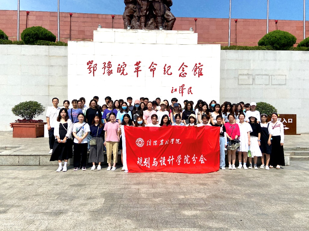 2021年6月30日上午,规划与设计学院教师马婷、尚存带领视觉传达设计专业学生到鄂豫皖革命纪念馆开展课程思政实践教学。课程思政的主题是“传承红色基因,弘扬大别山精神”,以艺术设计创作为载体,向党的百年华诞献礼。