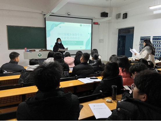 2021年12月28日,规划与设计学院城乡规划专业、城乡规划(景观规划设计)专业、风景园林专业、环境设计专业、广告设计与制作专业召开毕业生实习动员大会。