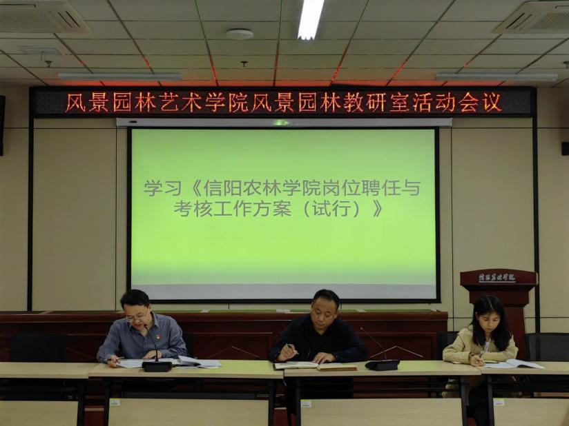 10月15日下午,风景园林教研室在文学艺术楼202会议室召开教研室工作会议,会议由风景园林教研室主任郭雨主持,副院长张志锋及全体教师参与。