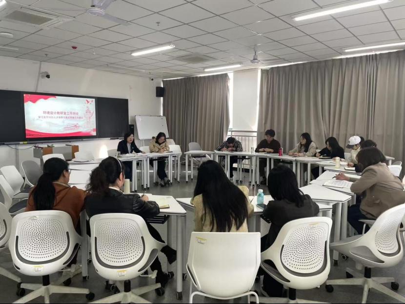 会议初始,由石金金副主任预告了第四季度日常教学工作,传达了学院近期的教学工作具体安排。接着,徐主任就2025届环境设计专业的毕业论文(设计)指导工作的重要性进行了强调,根据黄子庭、李一言老师对毕设选题情况的汇报,从毕业设计的选题的注意事项、参考文献的时效性、毕业设计的进度要求、指导老师与学生之间如何沟通交流四个方面进行了经验分享。同时,解读了《beat365在线平台官网关于制定2025版本科人才培养方案的指导意见》初稿文件、《普通高等学校本科专业类教学质量国家标准》中设计学的内容,总结了21版人才培养方案的经验和不足,老师们就目前课程体系、课时安排、新时期的学生情况展开了激烈的讨论并提出了建议。最后,徐主任传达了学院党政联席会的会议精神,对学校和 学院关于岗位聘任和考核工作相关精神进行说明。