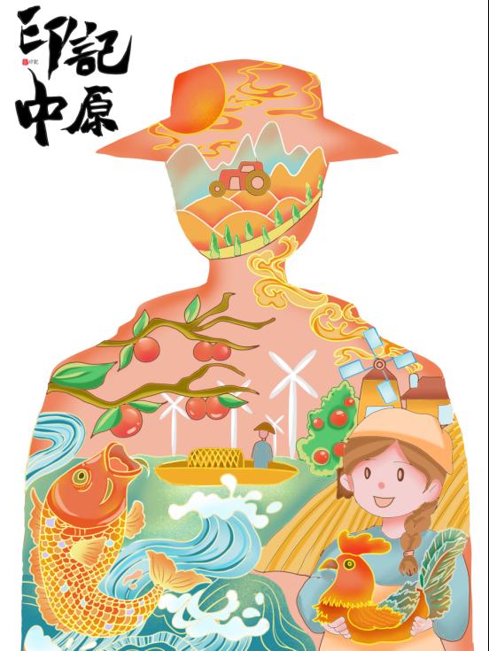 印记中原这个一系列海报是围绕乡村题材来创作的,一提到乡村,每个人都会想到勤劳的农民伯伯忙碌的情景,所以这一系列海报我主要的外形轮廓是农民伯伯的身影,每张海报分别以乡村产业收成,乡村科技为创作主题,色彩和设计相结合,画面丰富多彩,反映了乡村的美好画面和发展。