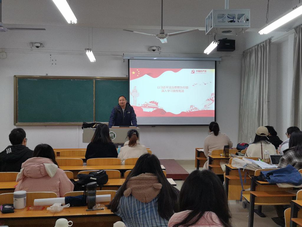 会上各班辅导员老师精心准备学习资料,以讲解、问答、案例分析等形式向同学们进行宪法知识宣传教育,主要内容包含:《宪法》内容普及、深入学习贯彻习近平法治思想、教育法和疫情防控等相关法律法规。