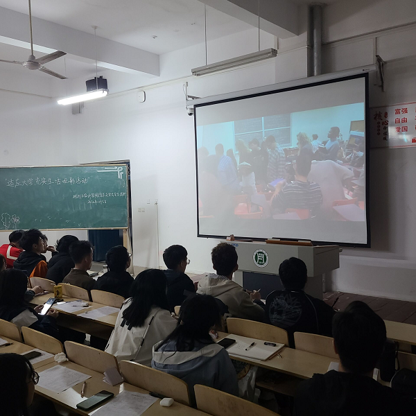 本次活动内容包括汇报演讲、观影、问答互动等流程,活动过程中,同学们认真观看视频,积极作答。两个小时的活动中,同学们对大学生活有了更充分的认识。