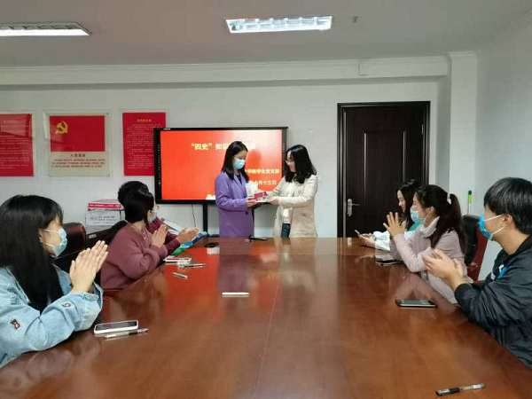 此次竞赛主要围绕党史、新中国史、改革开放史等内容展开,旨在提高广大学生党员和入党积极分子对“四史”知识的学习了解。竞赛通过问卷网扫码答题的形式进行。活动前期,学生党支部组织参赛人员进行赛前自主学习并精心制作了一份四史知识竞赛测试题,以单选题、多选题、判断题、填空题为题型,共45题,满分100分。之后学生党支部安排参赛人员进行初赛,然后评委由初赛成绩由高到低筛选出参加决赛的人员。决赛选手沉着冷静,发挥出色,比赛名次在最后时刻诞生,把此次竞赛推向了高潮。最终,赵莹莹同学以93.5分的高分获得了本次竞赛的一等奖。