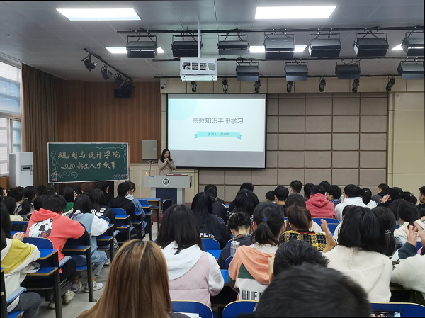 21日下午,规划与设计学院在一教E101进行新生入学教育系列之宗教知识讲座。讲座由规划与设计学院专职组织员孙琳苒主讲,20级新生辅导员以及全体新生参加了本次讲座。