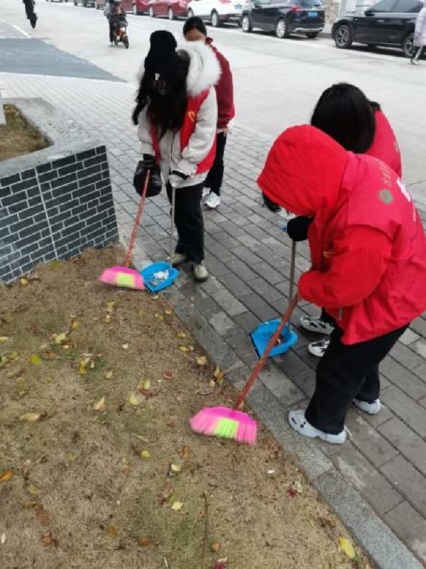 同学们身着志愿者服装,携带劳动工具,对新宿舍楼和实验楼之间的道路进行卫生清理;着重打扫了绿化带,路面等区域的落叶和垃圾。同学们各司其职,分工明确,认真清理各处卫生死角。纵使冬日寒风凛冽,大家热情不减,始终以饱满的精神态度,一心一意投入到劳动清洁活动中。