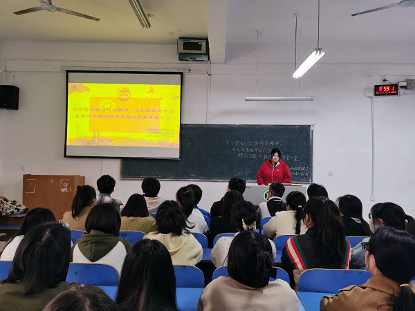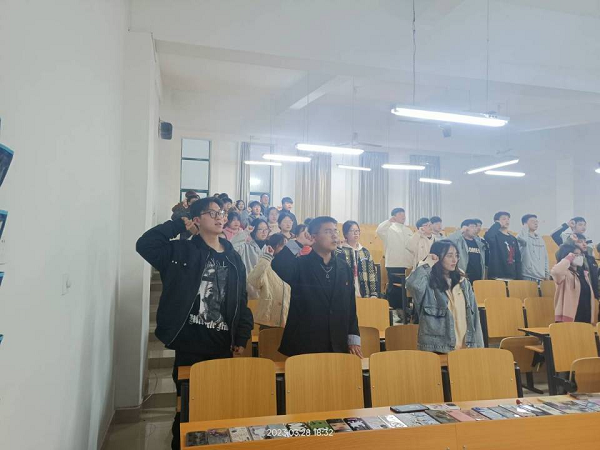 活动开始,各班团支书带领大家进行团员宣誓、齐唱国歌、团歌等环节。活动以ppt、播放视频和同学发言的形式讲述了党艰苦奋斗,走到今天令世界瞩目的地位,迈向又一新征程。已经走过百年历程的共青团要在新时代肩负起党的后备军的使命,要有社会责任感和历史使命感, 用心去感悟两会精神内涵,努力学习,积极探索,艰苦奋斗,将两会精神内化于心,外化于行。广大青年要志存高远,坚定理想信念,立足本质,在新时代中国特色社会主义建设的道路上书写属于自己的绚丽篇章。