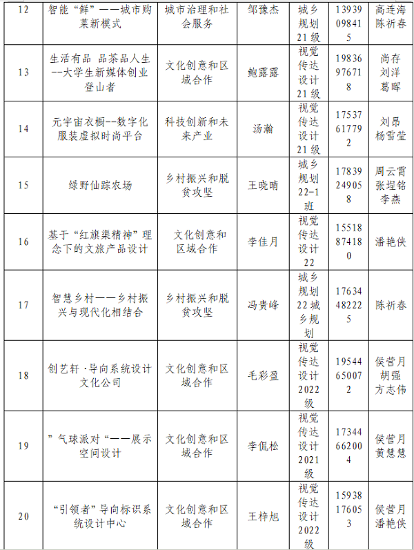 根据《beat365在线平台官网2024年“挑战杯”大学生创业计划竞赛方案》的通知要求,经风景园林艺术学院各班级学生申报、教师指导、学院资格审查和初评等环节,确定如下作品推荐到校级比赛,现予以公示。