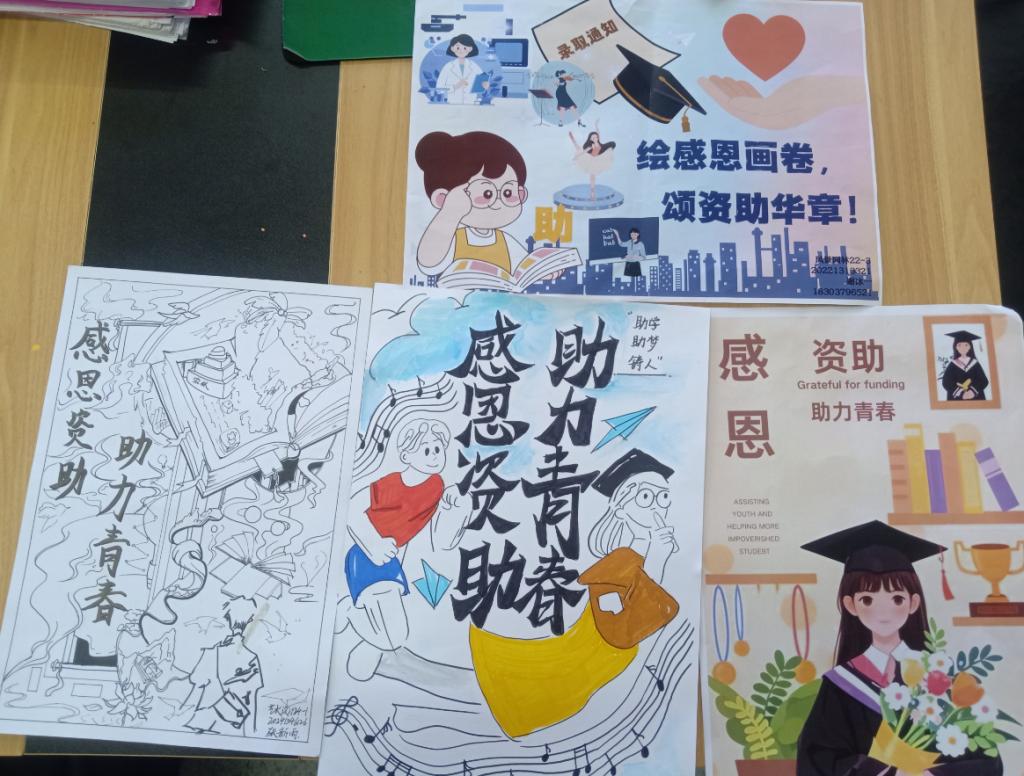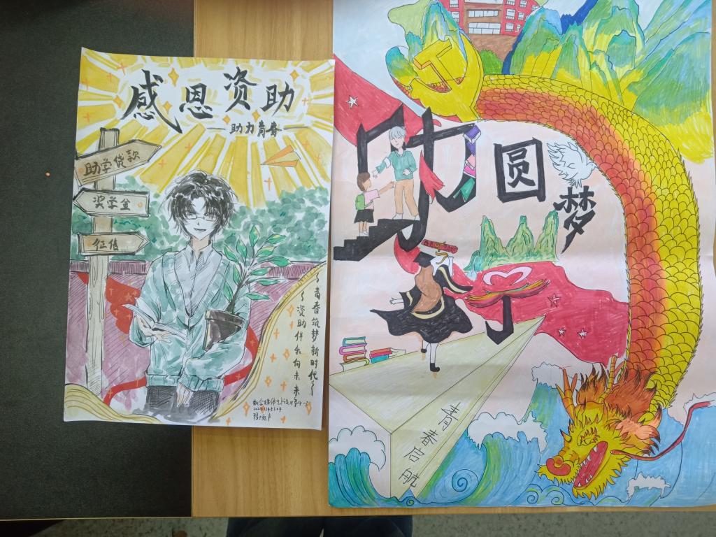 本次活动旨在通过绘画的艺术形式,展现资助政策在助力青年学生追梦路上的积极作用。学生们围绕 “感恩资助,助力青春” 这一主题,结合资助政策实际,充分发挥自己的想象力和创造力,用手中的画笔描绘出一幅幅表现形式多样的、饱含深情作品。有的描绘了在资助政策支持下,学生们在明亮的教室里努力学习的场景;有的展现了受助学生对未来的美好憧憬每一幅作品都生动地展现了学生们的感恩之心和青春活力。经过评选,翟婉丰、李盼盼同学荣获一等奖,陈叡迪、李柯雯、沈晨和谷文馨同学荣获二等奖,张新雨谢冰一程雅诺吴新鸽同学荣获三等奖。