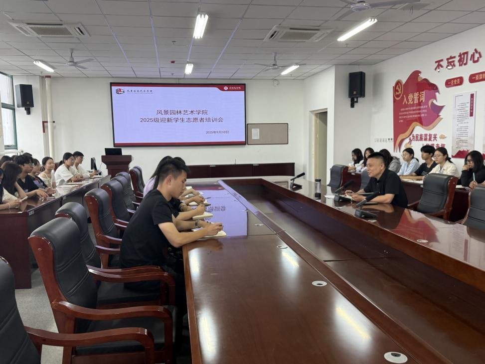 为迎接2025级新同学的到来,确保迎新工作高效、有序、温暖地开展,9月10日风景园林艺术学院在文学艺术楼702会议室开展“迎新学生志愿者”培训会。学院党委副书记耿城、团委副书记黄慧慧、专职组织员李美萱、专职辅导员王赫、辛颖及学院近300名学生志愿者参加,会议采取线上线下相结合的形式展开。