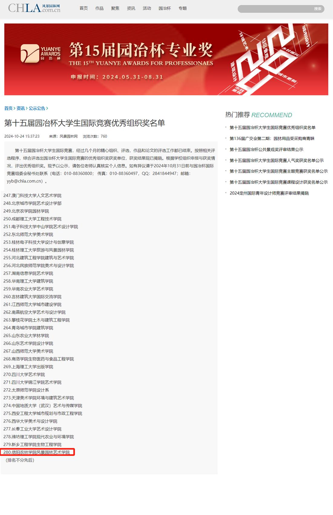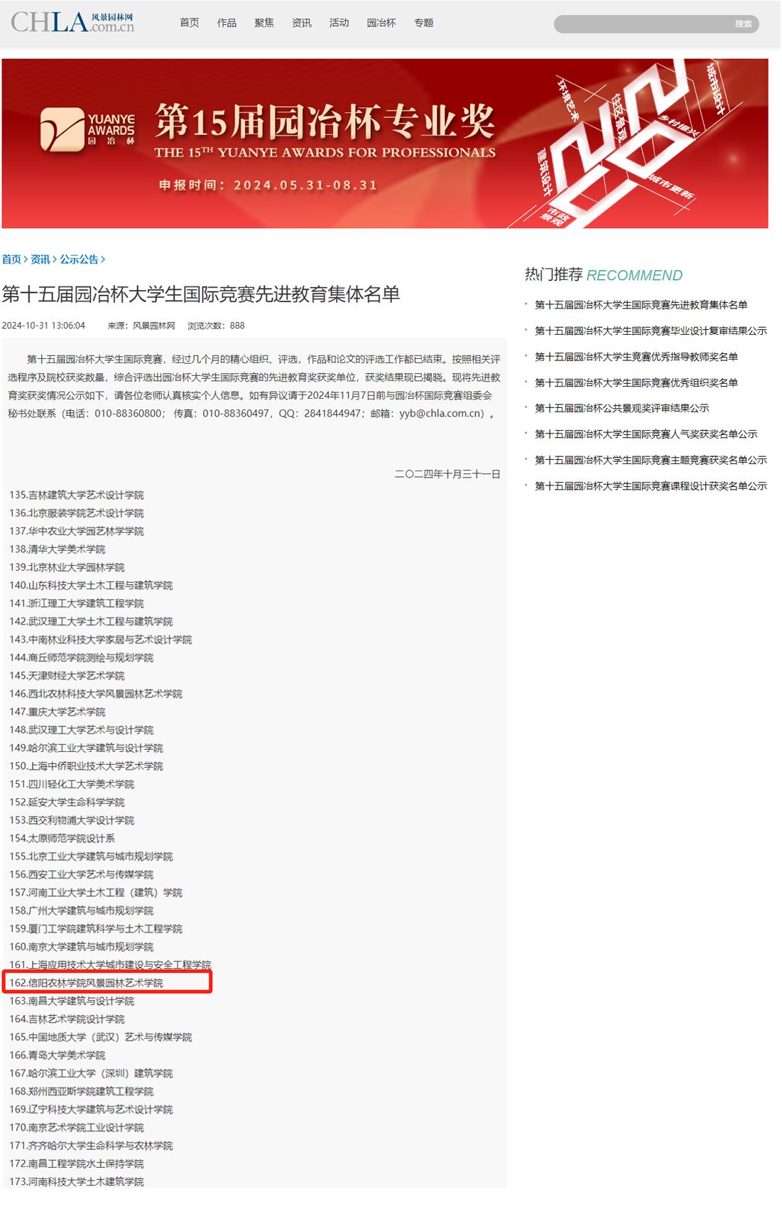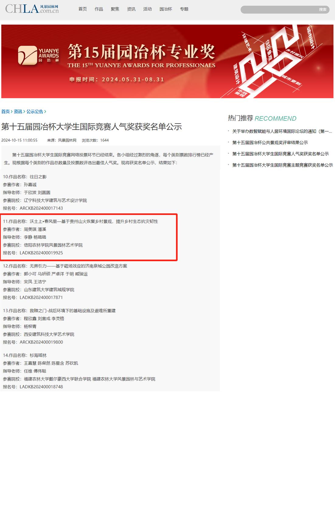 园冶杯国际竞赛活动创办于2010年,主办单位为园冶杯国际竞赛组委会,支持单位包括国际生态景观协会、英国皇家建筑师协会、国际绿色建筑与住宅景观协会、亚洲园林协会、IFLA亚太等。园冶杯构建的校企合作平台、校际交流平台以及大学生同台竞技的舞台,是国内设计行业具有较强影响力的大型大学生竞赛赛事。在全国高校和业界产生了良好的声誉和广泛的影响,推动了国内外高校的学科建设、对外交流。本次竞赛,面向国内外建筑(土木工程)、城乡规划、风景园林、园艺、环境艺术等相关专业的大学生竞赛活动,赛事内容分为毕业设计、毕业论文、课程设计、主题竞赛四个类别。吸引了来自国内外近600所院校的本科生和研究生广泛参与,共计提交了3446份匠心独运的作品。经由园冶杯秘书处的严格审核与专家团队的初步评定后,210件佼佼者脱颖而出,进入到复审阶段,并经过激烈的角逐,最终确定了一、二、三等奖的获奖名单。我院风景园林专业学生获得佳绩。