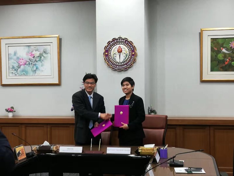 9月10日,副校长赵一鹏一行访问东南曼谷大学。东南曼谷大学是一所以商科为主的私立大学,1999年建立,以会计和工商管理专业闻名,设有会计、物流管理、市场营销、工商管理、旅游和酒店管理等专业,提供经典、小规模、高质量的教育。东南曼谷大学校长Pattarada Rungung博士、国际交流合作处等部门负责人,参加了座谈会。双方分别介绍了各自学校的情况,并就学生互换、实习实训、教师互访、教师学历提升等方面进行了洽谈交流。随后,双方签署了合作备忘录。最后,访问团一行参观了东南曼谷大学图书馆、教室和餐厅并与多位中国留学生进行了深入交流。