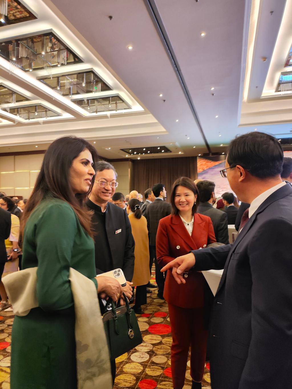 孙卫东祝贺巴基斯坦迎来第84个国庆日,表示中巴是全天候战略合作伙伴,中方始终将巴基斯坦置于周边外交优先方向,愿在两国领导人战略引领下,同巴方密切各层级交往,加快构建新时代更加紧密的中巴命运共同体;卡里尔·哈什米大使对与会的人员表示热烈欢迎,并称中巴关系仍然是维护地区与世界和平与稳定的源泉,中巴经济走廊之于“一带一路”倡议就像皇冠上的宝石之于皇冠,是合作共赢的光辉见证。