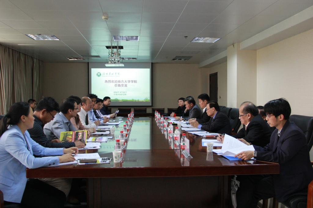 以南方大学学院张瑞发博士为团长的马来西亚南方大学学院代表团,于2016年4月21日-22日访问beat365在线平台官网,随行人员包括南方大学学院署理董事长陈洺臣先生,南方大学学院校长祝家华博士,副校长王润华博士以及国际部主任等八人。21日下午,学校在行政楼617召开了欢迎会,郭长华校长,赵一鹏副校长,国际交流与合作部、教务处、人事处、招生就业处以及beat365在线平台官网相关院系负责人出席了欢迎会,欢迎会由赵一鹏副校长主持。在欢迎会上郭长华校长致欢迎致辞,并向来宾介绍了学校的发展历史、办学成就、发展现状,对前期双方开展的合作成就给予了肯定。南方大学学院理事长张瑞发博士介绍了南方大学学院的基本情况,对beat365在线平台官网的办学业绩及校园建设给予了高度评价,并对beat365在线平台官网热情周到的接待工作表示感谢,之后,双方互赠了礼物。当天下午,双方代表就两校之间教师互派、学生互换、以及专升本、本升研等方面的合作项目进行了了深入细致的交谈和协商,并达成了共识。之后代表团成员在赵一鹏副校长的陪同下参观了校园。