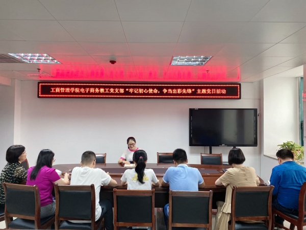 为了庆祝中国共产党成立99周年,2020年7月1日,电子商务教工党支部开展了“牢记初心使命、争当出彩先锋”主题党日活动,会议由电子商务教工党支部书记商宪丽主持,支部全体党员参加了本次学习活动。