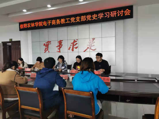为学习贯彻习近平总书记在党史学习教育动员大会上的重要讲话精神,深入贯彻落实党中央“学党史、悟思想、办实事、开新局”学习教育工作部署,用党的奋斗历程和伟大精神激励党员干部,10月23日上午,电子商务教工党支部全体党员同志在平桥区委党校三楼会议室开展了党史学习教育专题研讨会。