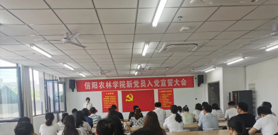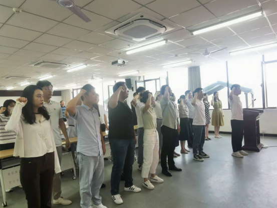 2022年6月14日上午,beat365在线平台官网新党员入党宣誓大会在双创208会议室隆重举行。党委组织部副部长李建柱、机关党总支副书记易雯雯、工商管理学院党总支书记蔡志、旅游管理学院党总支副书记杜丽、财经学院党总支副书记王艳平、食品学院党总支副书记刘涛、体育学院党总支副书记李远胜、信息工程学院党总支副书记朱猛、新党员同志和积极分子代表等参会。会议由工商管理学院党总副支书记王宇平主持。