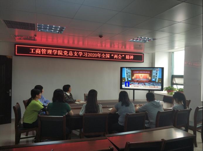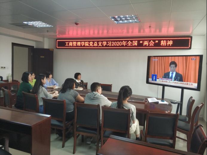 5月26日上午,工商管理学院党总支组织在校教师学习两会精神,会议由院长潘一平主持。