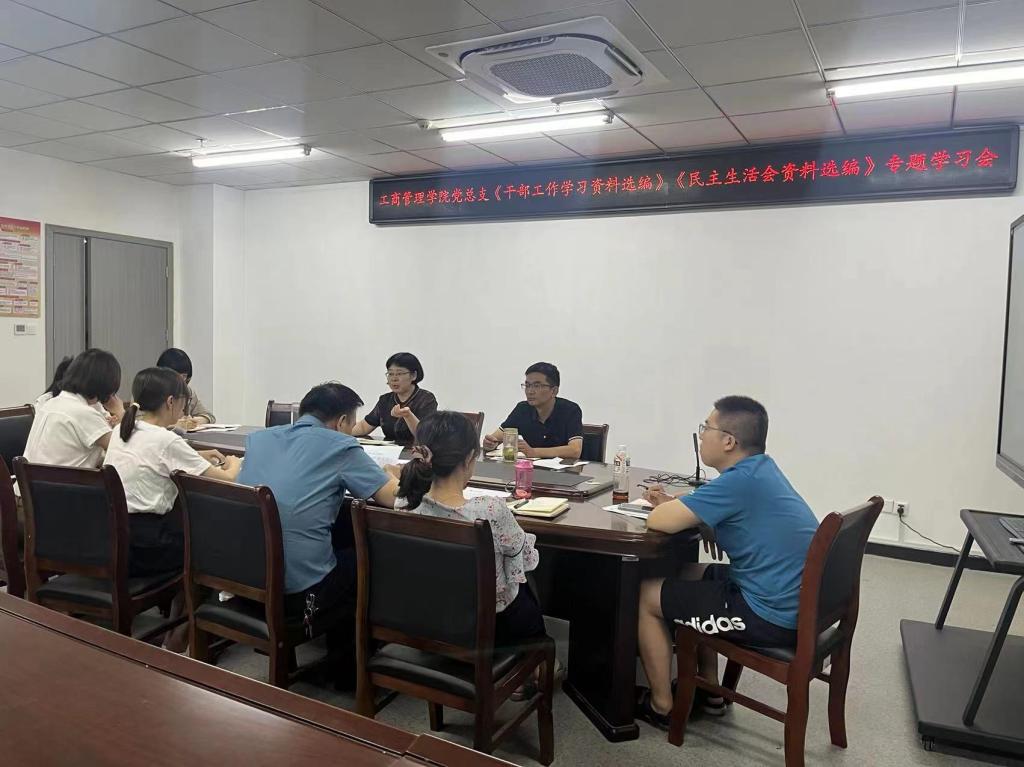 8月3日上午,工商管理学院党总支在双创中心215会议室召开《干部工作学习资料选编》《民主生活会资料选编》等文件精神的专题学习会。会议由学院党总支书记主持,学院班子成员参加会会议,院科级干部列席。