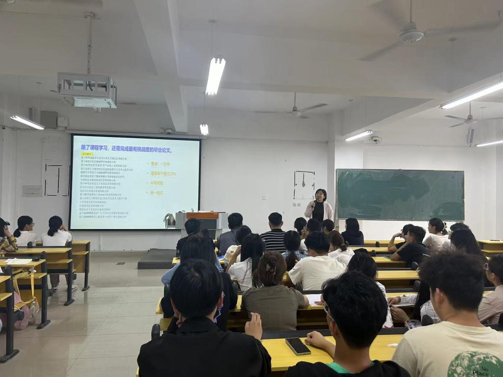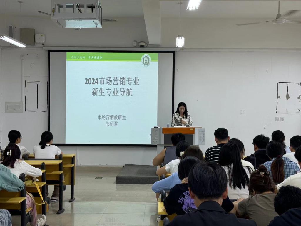 为了使2024级市场营销专业专升本新同学能更好地适应新学期新生活,深入了解学校的管理和校规校纪,加强专业认知,培养良好的学习习惯。9月13日下午,在二教303教室开展了24级新生入学教育,市场营销教研室主任郭昭君、副主任宋歌、部分骨干教师以及88名专升本新生参加了讲座。