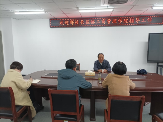 10月20日,校长邢勇莅临工商管理学院调研指导工作,学院院长潘一平、党总支书记蔡志、副书记王宇平、教研室主任等科级干部和部分专业教师参加会议。
