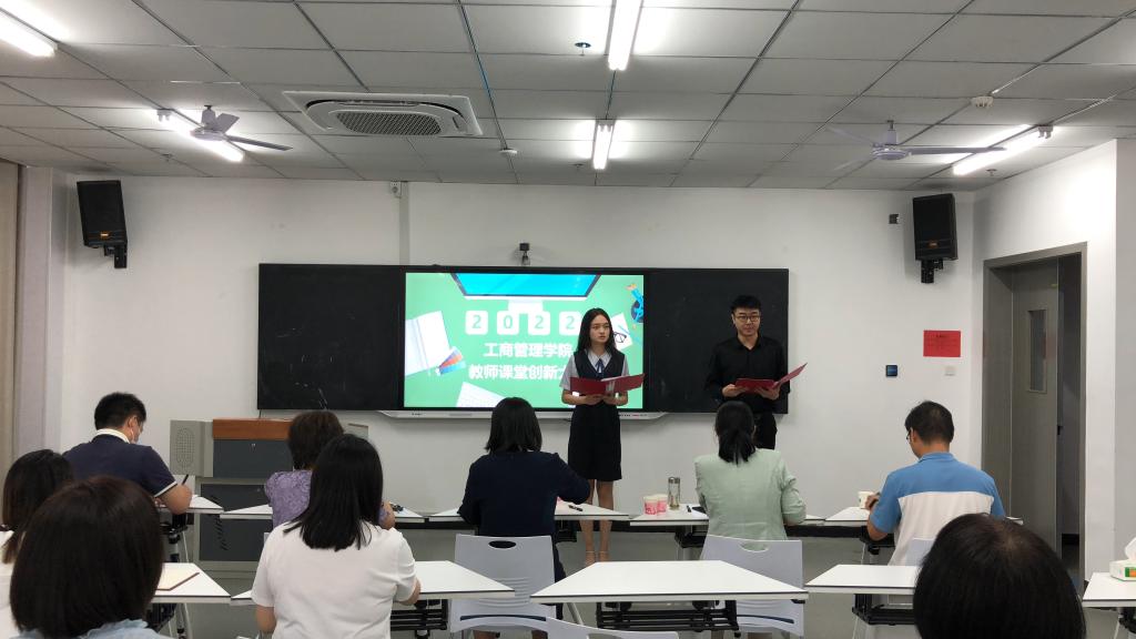 2022年6月12日上午,工商管理学院在双创中心203举办2022年教师课堂创新大赛。邀请了陈利军、孙慕芳、唐芳、张立恒、伦峰五位老师作为评委出席本次比赛。