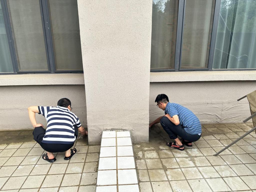 蔡志、潘一平等人逐一检查了学院一楼实训室、二楼办公室、教室,对二楼东、西、南、北四个平台垃圾和泥沙进行清理,防止排水管道阻塞,确保畅通。及时搬移实验室电脑等教学仪器设备,针对部分设备较大无法挪动的情况,联系后勤管理处在前后门放置沙袋,防止雨水进入。