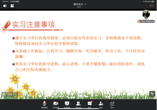 为破解就业难题,消除毕业生在就业、择业中的困惑,进一步帮助同学们树立正确的就业观和择业观,使广大学生了解就业形势、就业政策,转变就业观念,提高就业技能,2022年12月8日下午,电子商务专业在腾讯会议召开了2023届本科毕业生毕业实习动员会。会议由电子商务教研室王振江老师主持。