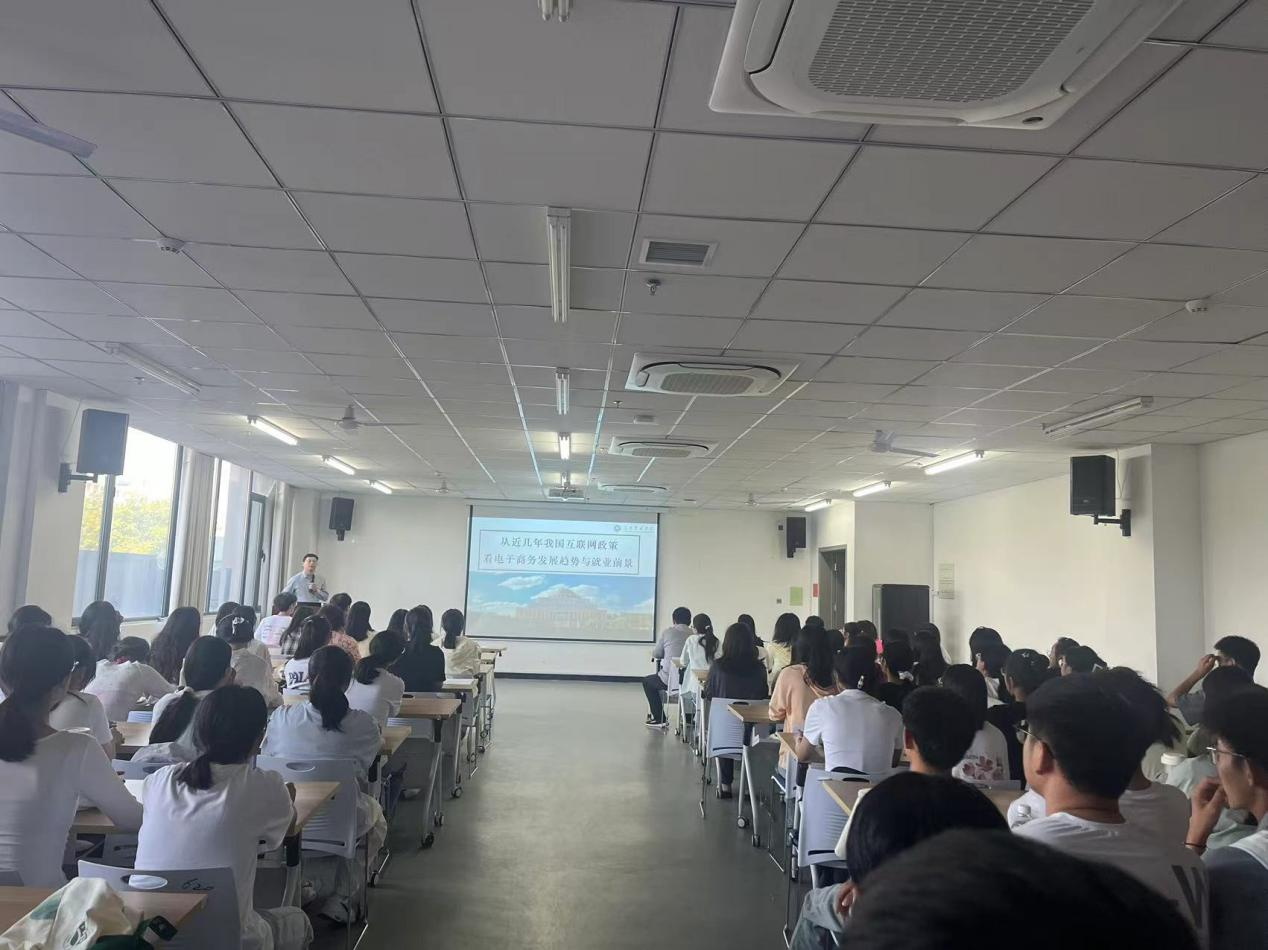 23日下午,电子商务教研室组织开展了“专业引领,筑梦未来”的专业认知活动。活动开始,教研室副主任袁俊发表了热情洋溢的欢迎辞,随后由王振江副教授以“从我国互联网政策看电子商务发展趋势与就业前景”为题,从电商的发展历程、近年来国家互联网政策以及我国电商未来之路等多个方面为新生讲授了一场别开生面的讲座。接着,袁俊详细介绍了电子商务专业的专业特色、培养目标、课程体系以及毕业条件,为学生展示了丰富多样的实验课程和综合实训课程。教师代表潘玉辰、李仰光、高钰君分别从实用性、实践性和创新性简述了专业核心课程的知识框架。最后,往届学生代表向新生分享了大学生活和学习规划。