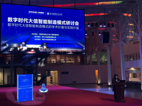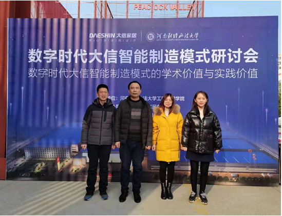 12月5日,由河南财经政法大学主办,郑州大信家居有限公司承办的数字时代大信智能制造模式研讨会在郑州大信家居有限公司举办。来自政府部门领导、中国社会科学院专家、高校教师及企业家代表相聚郑州大信家居有限公司,以“数字时代大信智能制造模式的学术价值与实践价值”为主题进行了一场多元、跨界、融合的研讨。为提高教师的实践教学能力,开阔视野,工商管理学院选派张世军、周其文、郭昭君、易善秋4位教师参加了本次研讨会。
