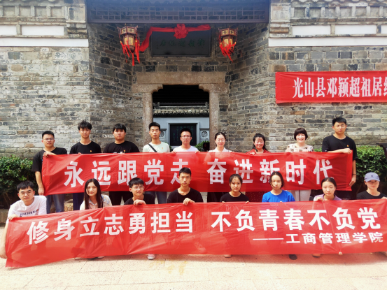 为庆祝建党100周年,贯彻落实习近平总书记关于深入学习“党史、新中国史、改革开放史、社会主义发展史”的重要讲话精神,工商管理学院暑期社会实践小分队于2021年7月12日前往信阳市光山县邓颖超祖居、司马光故居、王大湾会议会址纪念馆探寻红色旧址、追寻红色记忆、传承红色基因。