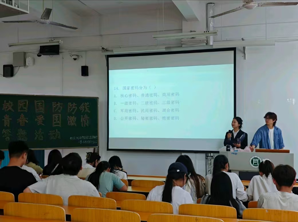 为提升学生的国防意识,帮助学生树立正确的国防观念,4月15日,物流与电商学院在二教109举办了“筑牢校园国防防线,点燃青春爱国激情”知识竞答活动。