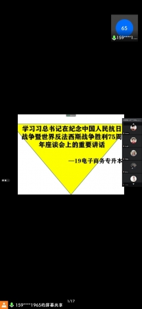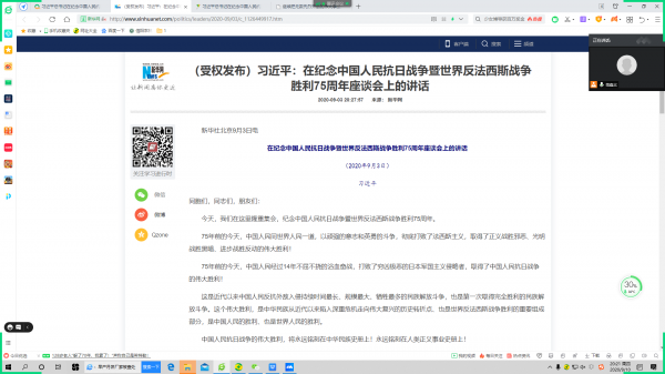 9月9日—13日,工商管理学院各辅导员在线上组织学习了习近平总书记在纪念中国人民抗日战争暨世界反法西斯战争胜利75周年座谈会上重要讲话。