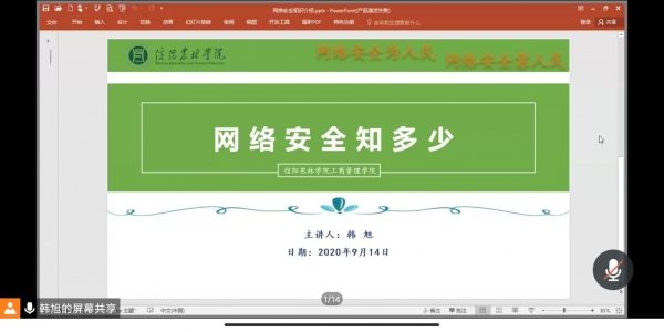 为深入开展网络安全知识技能宣传普及,提高师生的网络安全意识和防护技能,9月14-15日,工商管理学院全体师生同上了一堂网络安全课。