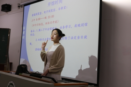 在活动过程中,同学们积极提问,活动进行的井然有序。老师分别为同学能讲解了图书馆概况、开馆时间、图书馆排架系统、索书号的构成、借阅证事务、图书馆借书借阅规则并宣读了图书馆入馆制度。在活动的尾声,老师还为同学们推荐了几本读物,并说了自己对这些图书的感想。