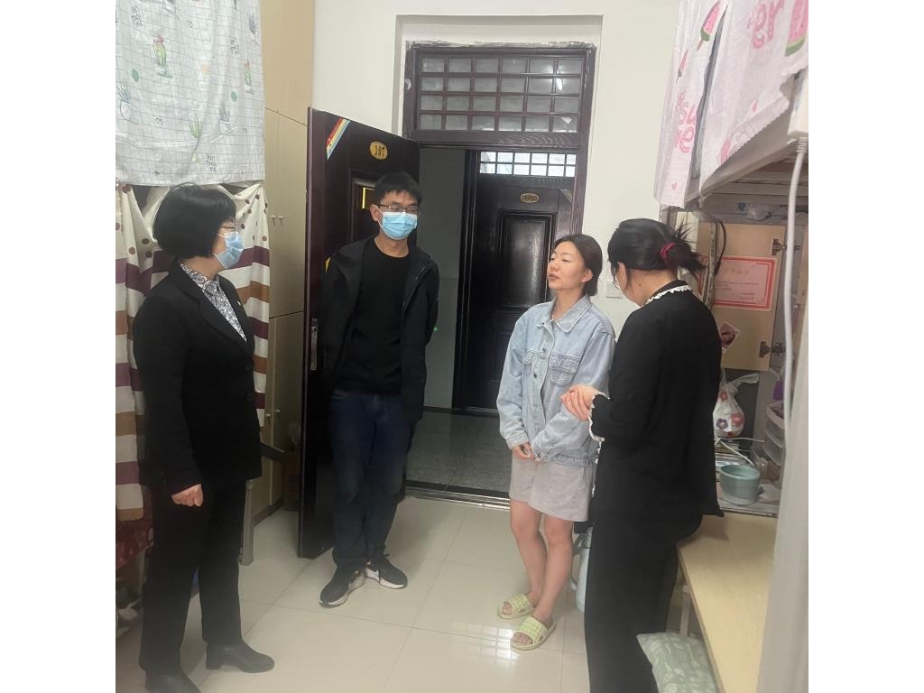疫情期间,为了解工商管理学院学生学习生活和安全健康状况,46日,学院院长潘一平、书记蔡志副书记王宇平和辅导员一行深入学生宿舍,为同学们带去慰问,并与同学们亲切交流。