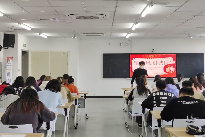 为进一步提高学生诚信意识,增强资助育人成效,使学生真正理解诚信教育的重要性以及“信用财富”的意义,促进国家助学贷款工作的顺利开展,同时引导学生树立诚实守信的价值观和科学理性的消费观,工商管理学院于11月5日组织学院申请高校助学贷款的学生举办签约仪式,签订贷款合同。